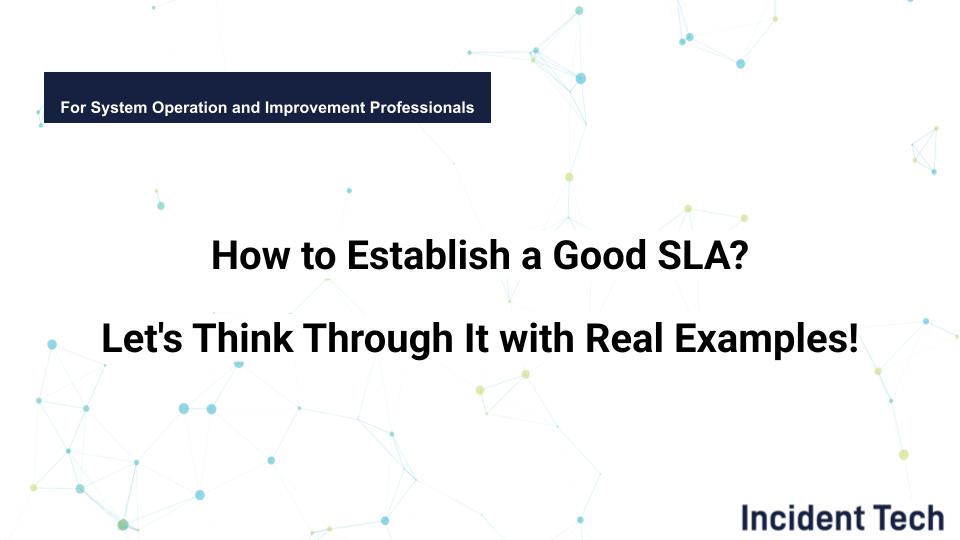 As with Example 1, you need to consider the team’s capacity, stamina, hours of coverage, and communication method. A useful mental exercise: if an actual incident happened right now, what would you do step by step? Walk through that scenario when evaluating whether an SLA is achievable.